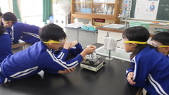 安全に気を付けて、水溶液の特徴を調べています。