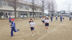 今年度、最後の「さわやかタイム」を行いました。一人一人の目標の周数にむけて、5分間、元気いっぱい校庭を走りました。
