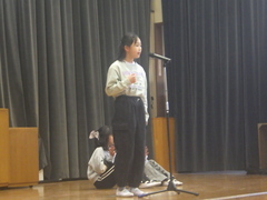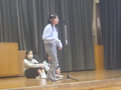 昼休み、特技発表会を行いました。ダンスや歌唱、竹馬、声まね、ギター演奏など、自分の特技をみんなの前で発表してくれました。