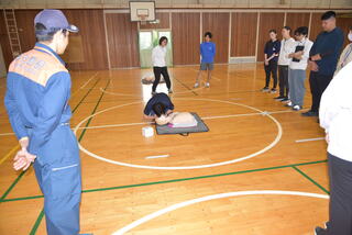 6月に入ると水泳学習が始まります。もしもの時に子供たちの命を助けることができるように消防署の方をお招きして、心肺蘇生法の研修会を行いました。