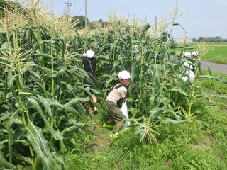 今年度もほくさい農業協同組合の方々の御厚意で、2年生がとうもろこしの収穫体験をすることができました。学校から15分ほど歩いていくと、とうもろこし畑がありました。2年生の身長よりはるかに背の高いとうもろこし畑が広がっていました。2年生は、大喜びでとうもろこしを収穫しました。収穫したとうもろこしは、お家へのおみやげに持って帰りました。