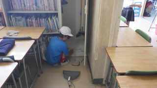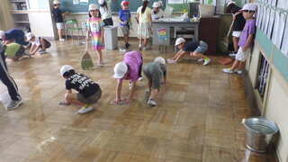 児童全員で主に自分たちの教室をきれいに掃除しました。1年生も椅子や机を廊下に出し、教室の床を濡れ雑巾で一生懸命拭きました。他の学年の中には、教室だけでなく掃除道具入れや階段を丁寧に掃除している児童もいました。みんなで掃除をがんばったので、学校がきれいになりました。