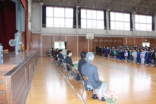 子供たちの登下校を見守ってくださっている方や子供たちが貴重な体験ができるように学校応援団としてお手伝いしてくださった方、読み聞かせボランティアの方などに出席をしていただきました。子供たちがお世話になっている方々に花とありがとうメッセージを渡し、感謝の気持ちを伝えることができました。
