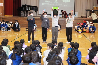 学校に不審者が入ってきた時、どのように避難をして命を守るかという訓練を行いました。今年度は、警察の方に不審者役を行っていただき、教員が子供たちの命を守るにはどうしたらよいか、どのようにさすまたを使うのかなどの御指導をいただきました。また、子供たちが体育館に避難した後、防犯教室を行いました。学校で不審者が現れた時の対応の仕方のほかにも、下校の時に不審者が現れるのが多く不審者が近づいてきたら、大人を呼ぶ、子ども110番の家に逃げるなどの対応の仕方を教えていただきました。