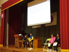 代表児童が、3学期に頑張りたいことをスライドにまとめ、わかりやすく発表しました。